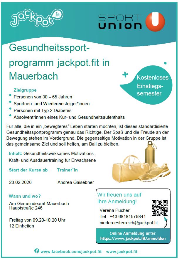 Für alle, die in ein „bewegteres“ Leben starten möchten, ist das JACKPOTFIT Gesundheitssportprogramm genau das Richtige. Der Spaß und die Freude an der Bewegung stehen im Vordergrund. Die gegenseitige Motivation in der Gruppe ist das gemeinsame Ziel und soll helfen, am Ball zu bleiben.